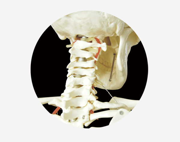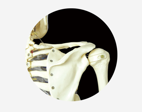 Tall: 170 cm. Correctly articulated to show the normal posture. Consists of a 3-part skull, a cut calvarium and a removable spring-held mandible. The upper and lower extremities are removable. Rod supported, on stand.