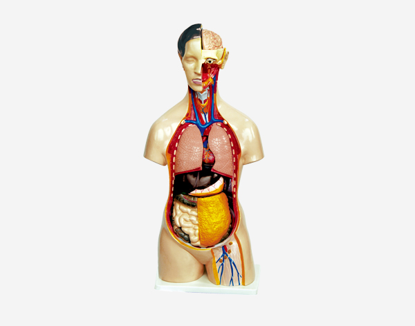 This popular school torso is supplied with the following removable parts: 3-part head 2 lungs2-part heart2-part stomach Liver with gall bladder 1- part intestinal tract Front half of kidney. 13 parts