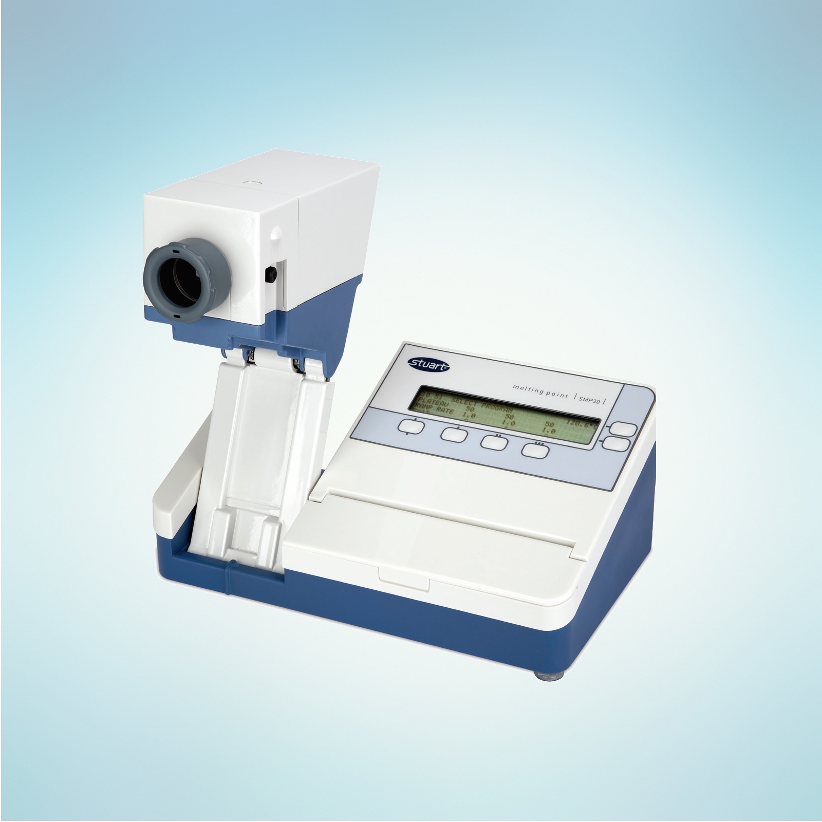Designed for fast accurate determination of melting points, the SMP30 can take three samples simultaneously within the optimized heating block, the unit has a maximum temperature of 400°C. To allow maximum flexibility a plateau facility is included with variable ramp rate between 0.5 and 10°C in 0.1°C increments.