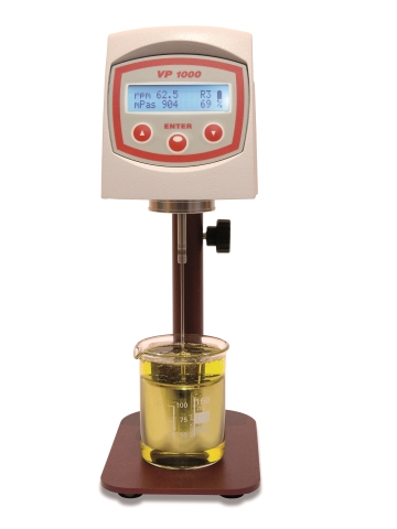 Measuring principle is based on a rotor immersed in the fluid to be tested and rotating at a constant speed; fluid’s resistance to the rotation is measured to obtain direct readings of viscosity in mPas and dPas.